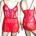 Superbe ensemble 2 pièces nuisette et string rouge en dentelle de marque Sanselle Nuisette blanche brillante avec dentelle et satin noir