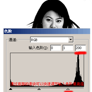 (5)利用色阶滤镜增强对比度,方法是利用底部的滑块调节“输入色阶”的最高值;