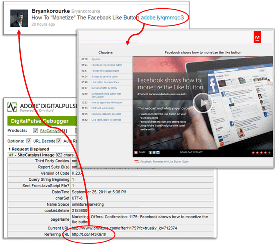 In the above example we would be able to see not only how many of Bryan’s followers clicked through, but also how many (and which) segments of the webinar they watched as well as how many of them downloaded the companion whitepaper. Now THAT is true influence!