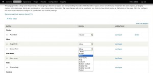 - Unten der Spalte Operations/ Operationen klicken Sie auf Configure/ Konfigurieren. Unten dem Region Settings/ Region-Einstellungen finden Sie die gleiche Position, die Sie für Default Theme ausgewählt haben. Dort können Sie auch festlegen, wo dieses Modul im Arminbereich und in den anderen Themen sezten soll.