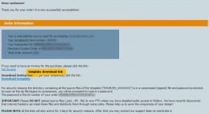 Mit Hilfe von diesem Link rufen Sie die Downloadseite Ihres Templates an. Das Aussehen der Downloadseite unterscheidet sich, das hängt davon ab, welche Website für Template-Einkauf benutzt wird: