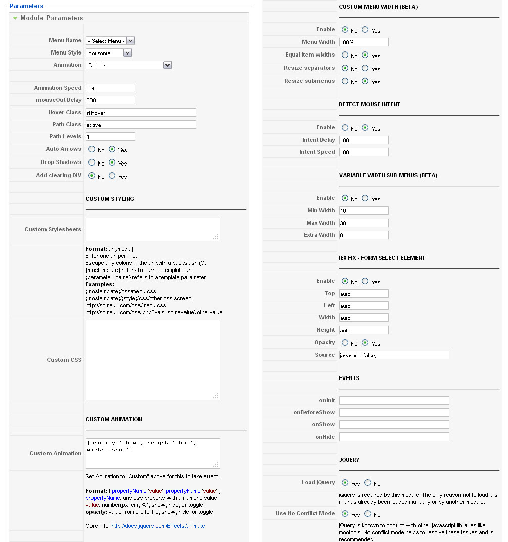 If you want to have more information on the module configuration please refer to the mod_superfishmenu manual.