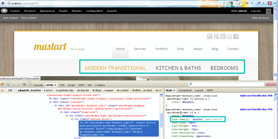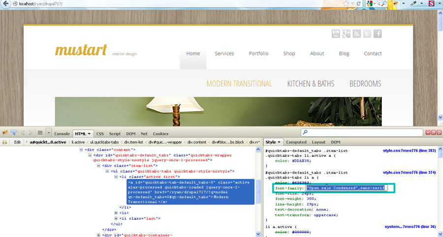 1. Lets change font for the text highlighted on the screenshot above. Locate the font that is used for particular text on your template using Firebug software. Information on how to use firebug you can find at Firebug. Mozilla Firefox plugin
