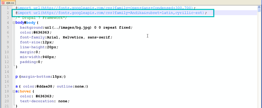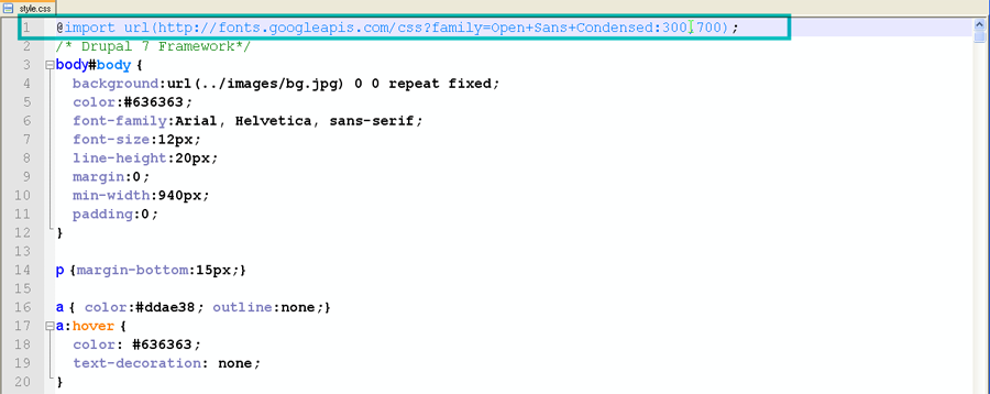 2. In our template font is imported to style.css file which is located in \sites\all\themes\themeXXX\css\ folder (XXX are actual theme numbers).