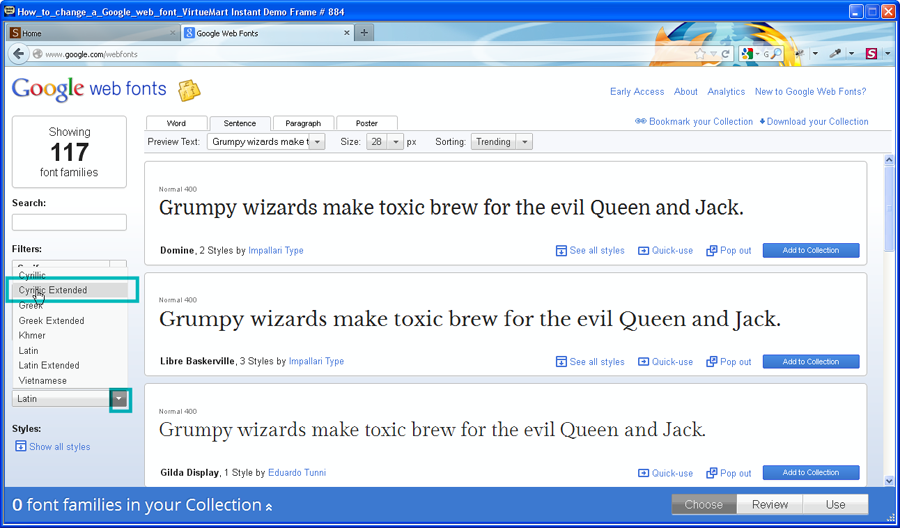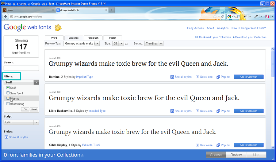 3.1. Open http://www.google.com/webfonts and Select appropriate font using filters.
