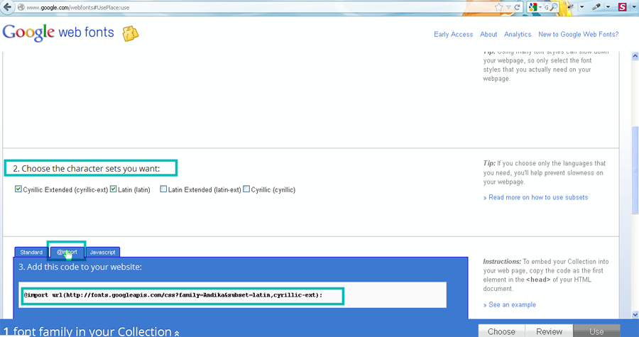 3.2. Pay attention to character set. Select font that supports your characters set. We have selected Cyrillic Extended in order to be able to use Cyrillic fonts.