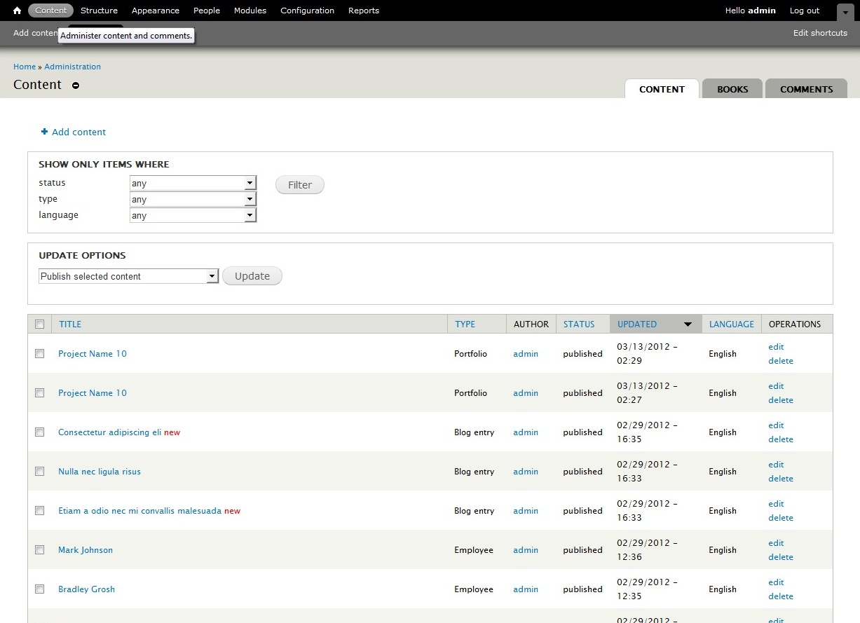 2) Go to the top menu "Content"