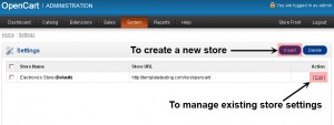 Abra System > Settings (Sistema> Configuración). Haga clic en Edit (Editar) para administrar la configuración de la tienda existente o haga clic en Insert (Insertar) para añadir la nueva tienda.