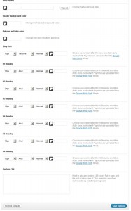 - H1-H6 Headings – Usted puede elegir su tipo de letra preferido para las cabeceras y los títulos. Nota: * al lado del tipo de letra significa que el tipo de letra es incluido en la biblioteca Google Web Fonts.