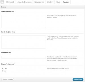 Footer copyright text – el contenido del pie de página. Si el campo de texto está vacío, el contenido predeterminado es mostrado. Se encuentra en el fichero footer.php.