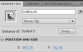 4) Select new box and convert it to symbol (F8), then add "mailtoLink" instance name