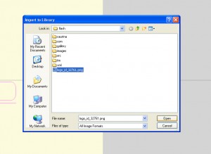 1) Open the FLA file and import your new logo image. Go to File >> Import >> Import to library