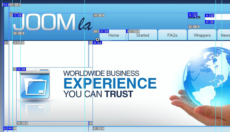 When you are done saving the slices upload the saved images to your joomla/templates/theme###/images folder replacing the default ones. This way you’ll make your changes affect the website.