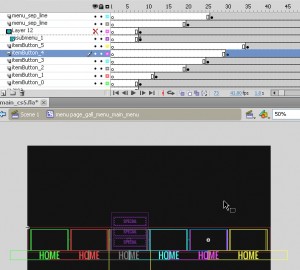 3) When selecting some button you can see there is first frame and every button first frame has some offset – it is for main page first animation and to make it proper after we change button order we should also change frame positions