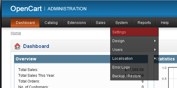 Please login to Opencart admin panel and go to System -> Settings.