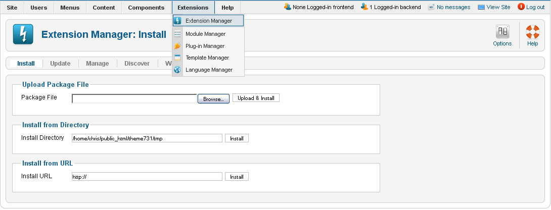 This tutorial will show you how to install Joomla 1.6 template. There are 2 ways to install the template.