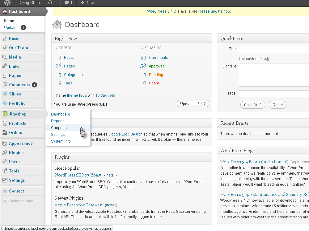 In this tutorial we will learn how to manage coupons in Jigoshop