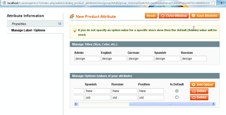 3. Lets create new attribute and product with this attribute. Screenshots of attribute settings you can check below.