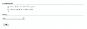 - Quick export that when clicked allows you to download an .sql file to your computer right away after you click "Go".