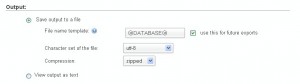 - Under Output you can give a name to your file, choose its character set and compression.