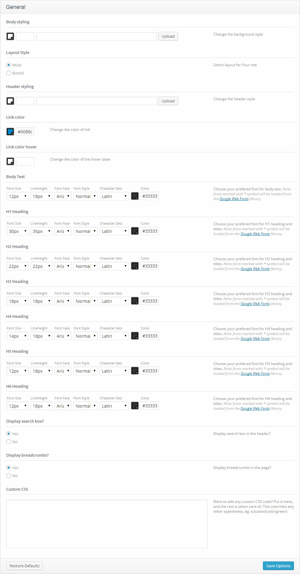 - Custom CSS - if you need to add some CSS rules, but you don't want to mess with the main CSS file, you can use this field. Just insert your new css rules.
