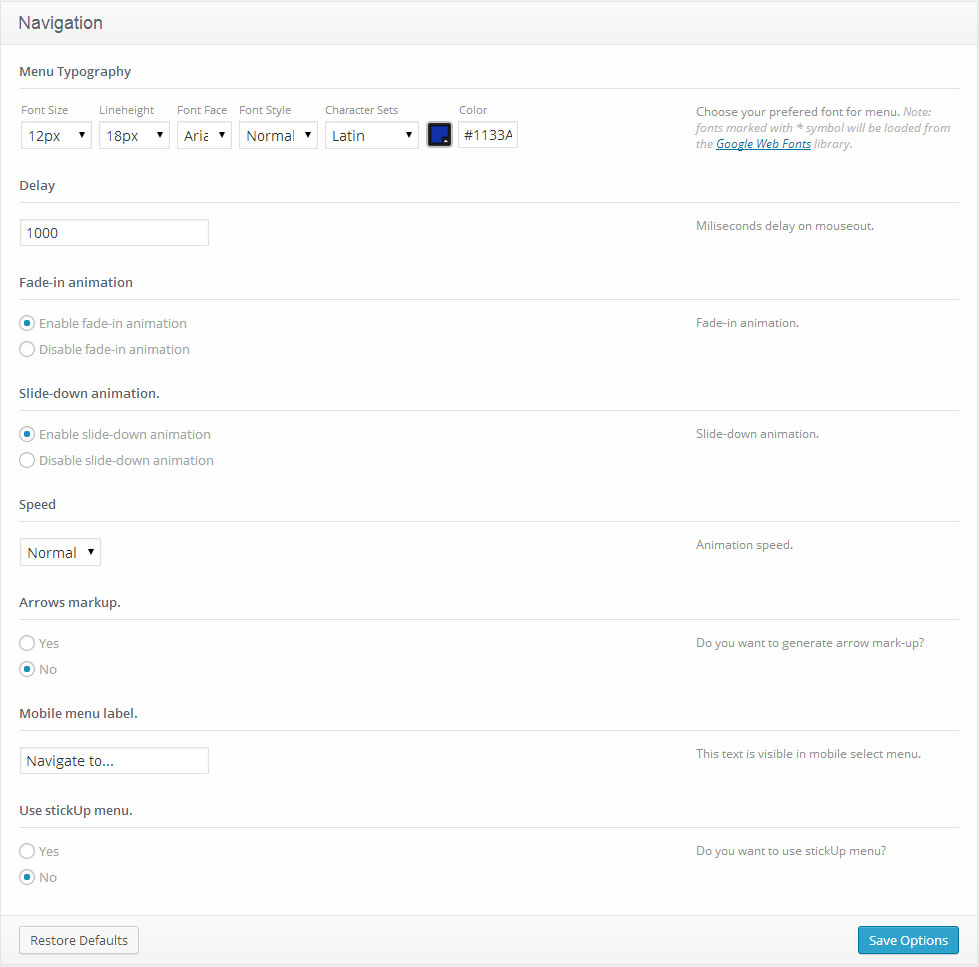 - Use stickUp menu - Enable this option if you want to use stickUp menu.