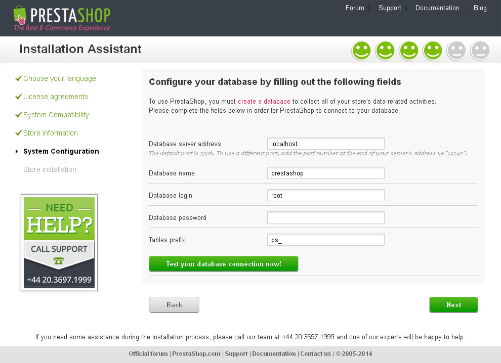 While installing your MySQL database, you will need to specify the database name, username, password and the database server. Remember these details as you will need them for PrestaShop installation.