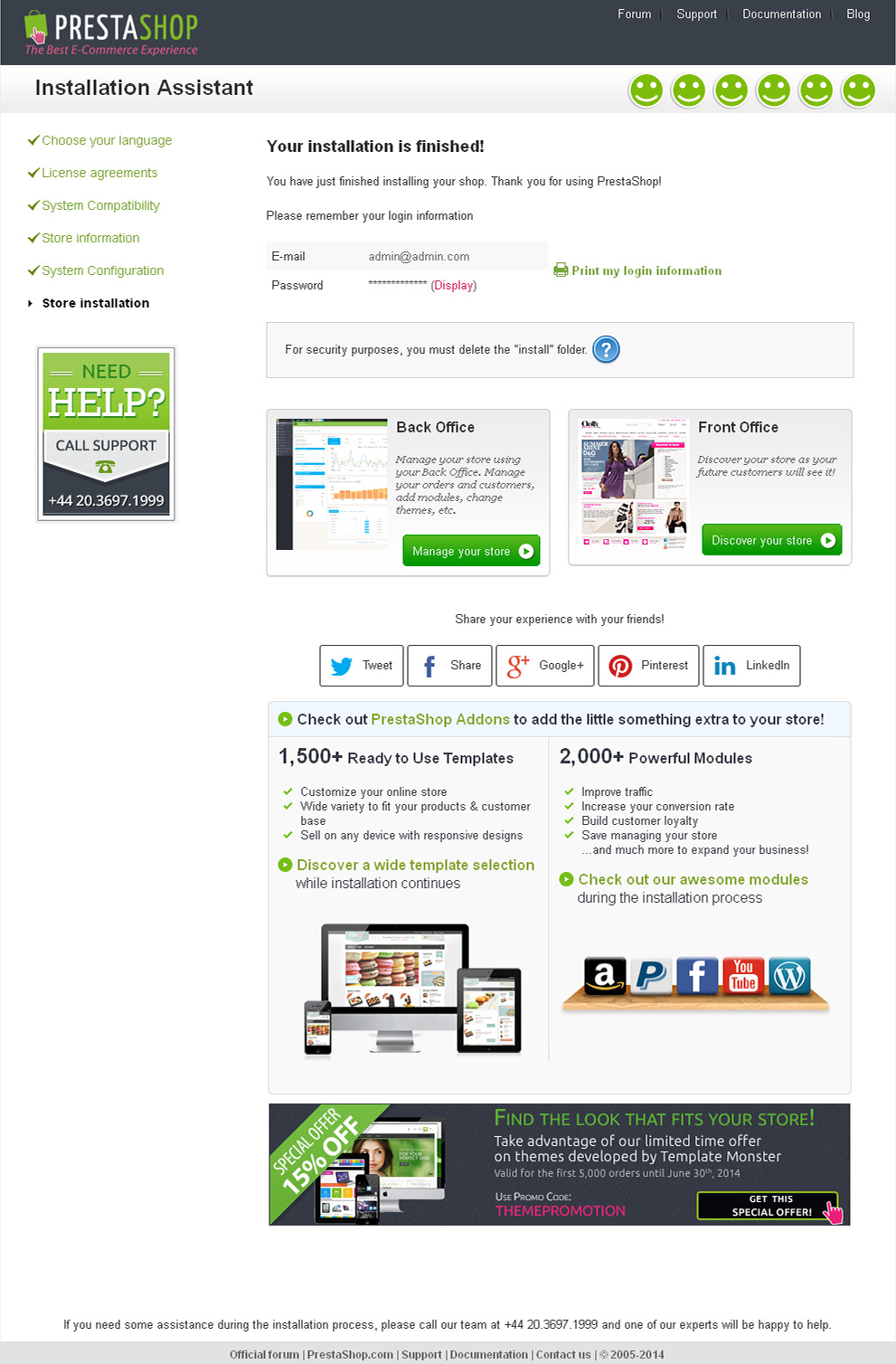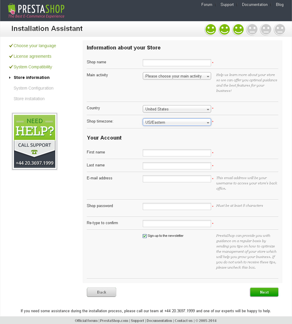 If you face any difficulties, please check the official PrestaShop installation manual.