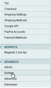 4. Выберите пункт меню «System» в разделе «Advanced».