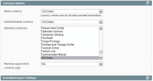 Помните, что валюты, которые вы собираетесь использовать должны быть в списке «Allowed Currencies» (удерживайте CTRL для выбора нескольких пунктов).