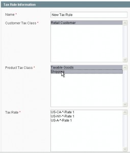 - выберите налоговые классы продуктов (используйте кнопку «SHIFT» для выбора нескольких пунктов)