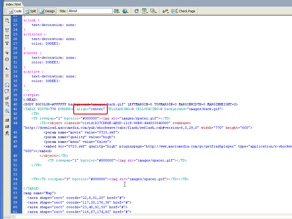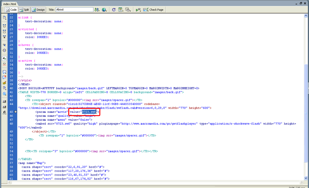 Откройте файл index.html из папки site_flash в Adobe Dreamweaver либо другом HTML редакторе.