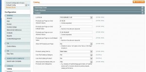 - Войдите в панель управления Magento и перейдите к меню System (Система) > Configuration (Конфигурация) > Catalog (Каталог) > Catalog (Каталог)> Frontend (Пользовательская часть)