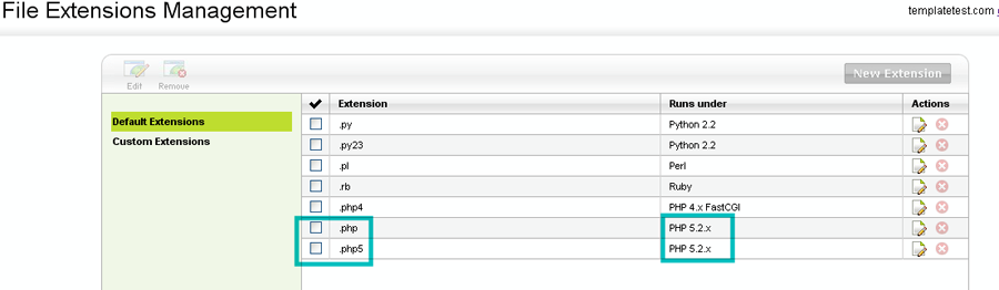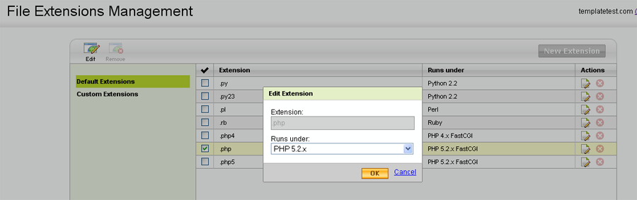 2. Измените .php и .php5, чтобы заменить версию на PHP5.2X (вместо PHP5.2xFastCGI)