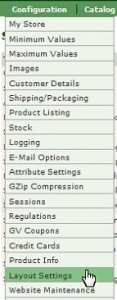 - In your Zen Cart Admin Click on Configuration > Layout Settings to access your Layout Settings screen.