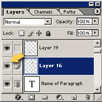 Для проверки содержания выбранного слоя выполните следующие действия. Если вы не можете увидеть его по каким-либо причинам – перейдите на панель слоев, выберите « Окно/Слои «. Там бедт видно подчеркнутый слой – это выбранный слой. Слева от названия слоя можно увидеть иконку. Нажмите на нее несколько раз, чтобы скрыть / показать слой.