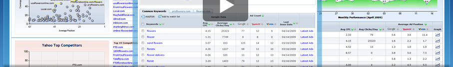 Get a detailed list of the top sites and keywords in the online industry. Check out who made it on top based on different search advertising criteria.