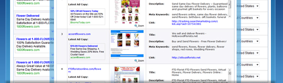 Get the exact data you need by having powerful searching options such as searching by domain, keywords, destination URL and ad copy content.