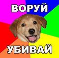 В России вместо собаки, как правило, подставлялся наиболее подходящий персонаж, а сам совет выражался наиболее кратко, обычно — двумя глаголами в повелительном наклонении. Одним из самых запомившихся Анонимусу макросов был «ВОРУЙ / УБИВАЙ»; его можно считать отдельным мемом, особенно в связи с кризисом. Также фраза прочно осела в жаргоне MMORPG, суть которых как раз и заключается в обворовывании и ограблении корованов да и вообще всего, что только можно.