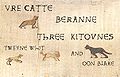 Bayeux Tapestry (бояр. ковіоръ изъ Байіо) — средневековый гобелен длиной 70 метров, созданный в конце XI века. На льняной ткани фиолетовыми, голубыми, зелёными и чёрными нитками была изображена популярная в те времена расовая нормандская драма о завоевании Англии войском герцога Вильгельма Бастарда.