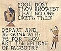 Поскольку описанные на ковре события происходили задолго до появления этих ваших интернетов, при создании правильных макросов стоит придерживаться определенных правил среднеанглийского языка. Строго говоря, на исходном ковре текст был вообще-то написан на латыни, а никакого письменного Middle English в те времена (и в последующие пару веков) не было: завоеватели-норманны пользовались старофранцузским, а английское пеонское быдло писать не умело по определению. То есть, конечно, писали, но мало и криво. То есть, до хрена и прекрасным шрифтом — староанглийской вернакулярной поэзии сохранилось до 1100 года больше, чем любой другой в послеримской еврашке, тут тебе и "Беовульфы", и стихотворные загадки, и даже лирика — но всем похуй, тем более, что мы решили старо- и среднеанглийский не различать.