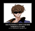 Лелуш Ламперуж (Лелуш Британский, мунсп. полив. Рурусю Рампэрудзи). ОЯШ Обыкновенный британский школьник обучающийся в Японии. Один из главных героев сериала. По мнению некоторых — гибрид Лайта из десуното и Артемиса Фаула (Фаул мелковат, скорее уж гибрид Пола Атрейдеса и Майлза Форкосигана). Самый сумрачный гений. Сын императора Великой Британской Империи, получивший в дар от C.C. силу короля — Geass. Припомнив клятву детства (об экстерминатусе Британской империи), создаёт Орден Чёрных Рыцарей (moon. 黒の騎士団), революционный орден, состоящий чуть менее, чем полностью из обиженных японцев. Хотя ... Если вспомнить, что авторы шоу в ответе за эти ваши Гандамы, то Лулу - Чар Азнабль, только брюнет и не всегда в маске. Принимается за своего японцами из-за ненависти к Британской империи и некую схожесть с Дартом Вейдером. Впрочем, наблюдательный анонимус узнает в Лелуше и Шахматного короля. Дал себе псевдоним — Зеро (что как бе намекает на его бескорыстность, ведь все страны, оккупированные Британской империей, пронумерованы в сектора, нет лишь нуля, то есть Zero). Как тут не вспомнить про субкоманданте Маркоса, который выступал под таким же псевдонимом.