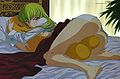 C.C. (мунсп. полив. Си Цу (C-Two)). Фапабельная богиня, умеющая давать силу, названную Гиассом. За исполнение желания. Живёт более 100 лет, бессмертна, бестолку тратить пули. После передачи Гиасса Лелушу, сначала исполняла роль Рюука. Но ближе к середине стала неиллюзорно помогать ГГ. Любит пиццу. Знает многое о гиассе, но ничего не рассказывает Лелушу, вызвая тем самым у него баттхёрт.Есть много предположений насчет ее настоящего имени, самое распространенное это Elizabeth (подкреплено когда то жившей королевой Баварии Элизабет aka СиСи, подробно в педикивии