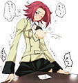 Карен Кодзуки (Каллен Стадфилд). Одна из повстанцев, позже пилот и козырь Ордена Чёрных Рыцарей, ферзь Лелуша и богиня. Частично напоминает Аску и Мари. От первой взяла лютую фанатичную ненависть к супостатам, от второй — цвет волос. В бою показала себя как профи, после чего получила новый knightmare «Алый Лотос» и высокое звание в Ордене. Люто, бешено ненавидит Судзаку, считает его предателем (что не далеко от истины). Умудрилась даже устроить неиллюзорную колотушку Судзаку во втором сезоне, находясь при этом в плену.