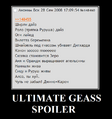 Code Geass (аноним. «котгиасс», яп. コードギアス,) — бурятский мультфильм про юношей бледных со взором горящим и высокими идеалами на фоне огромных боевых человекоподобных роботов. Для сей благородной цели расовая студия Sunrise (авторы этих ваших гандамов) взяли немного альтернативной истории, добавили мехи и обыкновеннейших японских школьников, приправили революционной и не совсем деятельностью и перемешали, водрузив на результат немного особой, уличной магии майнд-триков и прочего мелкого хулиганства, после чего запустили сие чудо в эфир.