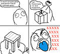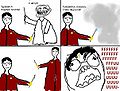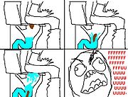 Решение проблемы было найдено: достаточно положить в унитаз немного бумаги, говно падает на нее и не брызгает. Однако, неестественно перекошенная, полная нечеловеческой боли и негодования, выражающая вселенский ужас рожа из последнего кадра ОП-пикчи-комикса, а также восклицание «FFFFFFFFFFFUUUUUUUUUUUU-», обрывающееся в точности как «OH SHI-» очень понравились анонам, и они тут же начали лепить новые комиксы по образу и подобию его.