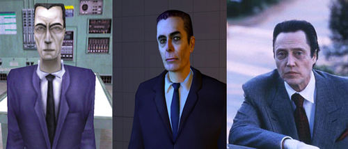 Человек лет сорока-пятидесяти в цивильном костюме и с чумаданом. Самая загадочная личность, аватара Анонимуса в мире Half-Life. Его цели неизвестны, а мотивы неясны. Приходит к Фримену только в эпичные моменты, разговаривает с трудом, в кейсе носит пистолет, ручку и фотографию себя любимого (что является просто приколом моделиста и не имеет к настоящему Г-мену никакого отношения). У него скрипучий насмешливый голос, со странными ударениями и сменами интонации. Голос, который ускоряется и замедляется совершенно непредсказуемо, как будто говорящему непривычна человеческая речь [2]. G-Man говорит медленно, скрежещущей манерой, ставя ударения на неверные слоги, делая ненужные паузы и неуклюже изменяя тон своего голоса, иногда даже в середине слова. Большинство фраз G-Man произносит плоско, механическим тоном и без акцента. В словах часто удлиняет звук «С» («Мисссс-тер Фримен»)[3]. Иногда смотрит на игрока как на говно откуда-нибудь издалека (обычно туда Фримен потом попадает и сам), а потом уходит, оставив нам хуиту вроде боеприпасов, аптечек и оружия. О том, кто он такой, ничего не известно. Даже погоняло изначально было дано фанатами по названию файла его модели в игре. Алсо в титрах после окончания игры существует момент, где перечисляются актеры, озвучивавшие персонажей, и среди прочих проскальзывает «Mike Shapiro (он говорил за Барни) — Gman»). Несмотря на это, можно утверждать, что он обладает практически исчерпывающей информацией о происходящем БП, заинтересован в выживании Фримена и ставит себя по отношению к Фримену (то есть основному возмущающему фактору) как куратор и наниматель из настолько вышестоящей организации, шопесдецнах. Его появление в процессе игры на первый взгляд намекало на то, что власти скрывают; однако сам факт выживания ГГ в конце первой части был обсуловлен атсральными чёрными вертолётами G-man’а, несколько выходящими за пределы возможностей предполагаемых спецслужб. Во второй части он больше символизирует и даёт слабину, покуда зелёные черти волокут Фримена из атсрала. Интересно также сравнить финальную сцену собственно HL2 с аналогичным местом кинофильма Time Bandits (несмотря на форсируемые Вачовскими параллели с унылыми сиквелами Матрицы).