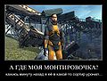 «Человеческое» название инструмента — «лом-гвоздодер», однако для гопоты это слишком сложно. Если ты мудак с монтировкой, то это не значит, что ты Гордон Фримен. Монтировкой Свободный Человек истребляет хедкрабов, ящики, доски и любых других неписей. Во второй части была почти полностью изжита еретической гравипушкой, которая к последним уровням заряжается читерской энергией.