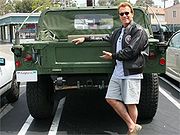 Но в 1991 году всем известный австрияк, косящий под пиндоса, увидев сабж на военном параде в Неваде, очень заинтересовался им и попросил продать ему девайс в количестве 1 (прописью: одной) шт. Однако получил от ворот поворот под предлогом того, что енто сугубо-военная-спецтехника™. Настырный Арни каким-то хитровыебанным путем все-таки выудил у «АМ» заветные ключики от замка зажигания и поехал кататься на своем брутальном БЧД по улицам Лос-Анжелеса.