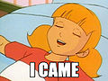 Впоследствии к тексту макроса стало прикручиваться изображение любого персонажа, чья мимика лица в запечатленный момент времени самым что ни на есть прямым образом намекает на оргазм. Как вариант — герой испускает, либо покрыт веществом, похожим на сперму. Ну, или хоть каким-нибудь.